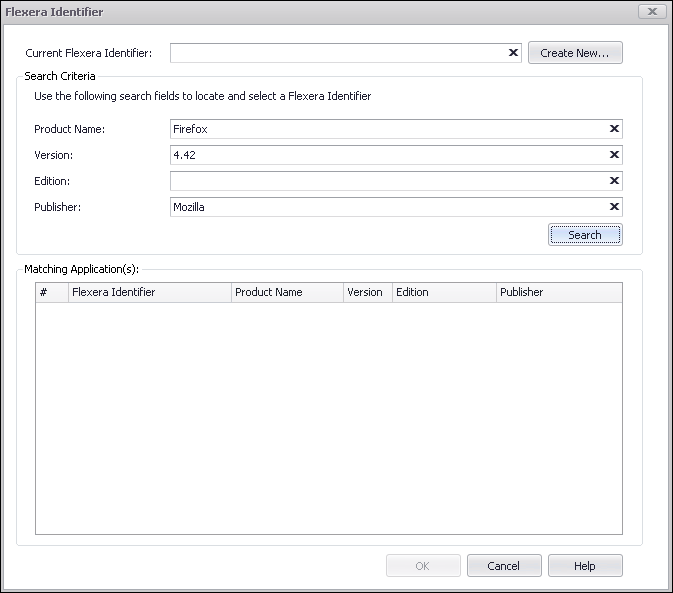 - Proceed with the steps in Performing a Manual Search for a Flexera Identifier, and if a Flexera Identifier is not found, proceed with the steps in Creating Local Flexera Identifier Entries for Internal or Repackaged Applications.