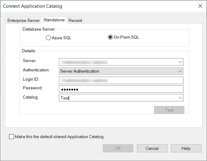 On the Specify Database Information panel of the Application Catalog Wizard and the Standalone tab of the Connect Application Catalog Dialog Box, you have the following two options: