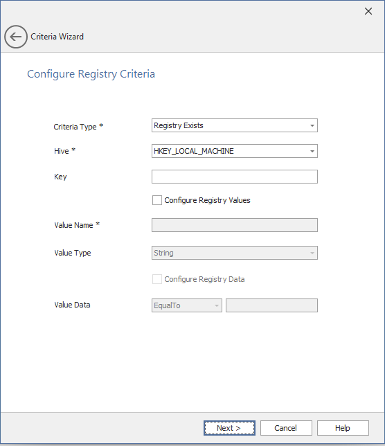 HiveSelect the registry hive of the registry key or value that you are using in this criteria.