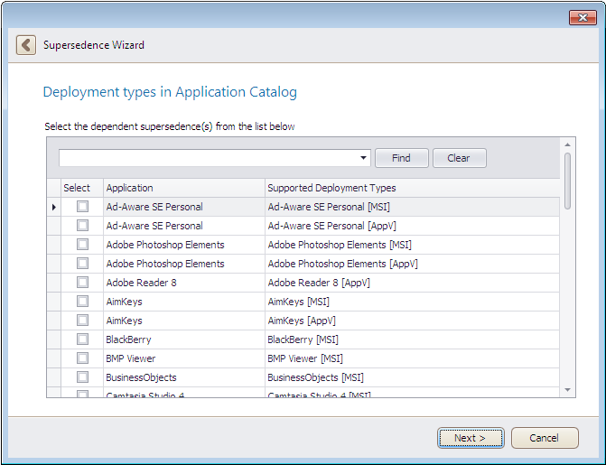 On the Deployment Types in Application Catalog panel, select the dependent supersedence(s) from the list.