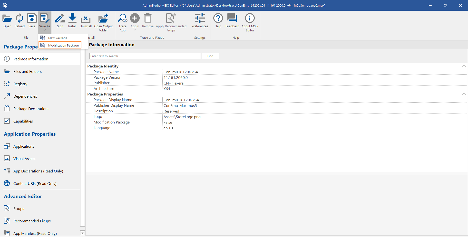 6. After saving, you can see the modification package loaded in the MSIX Editor.