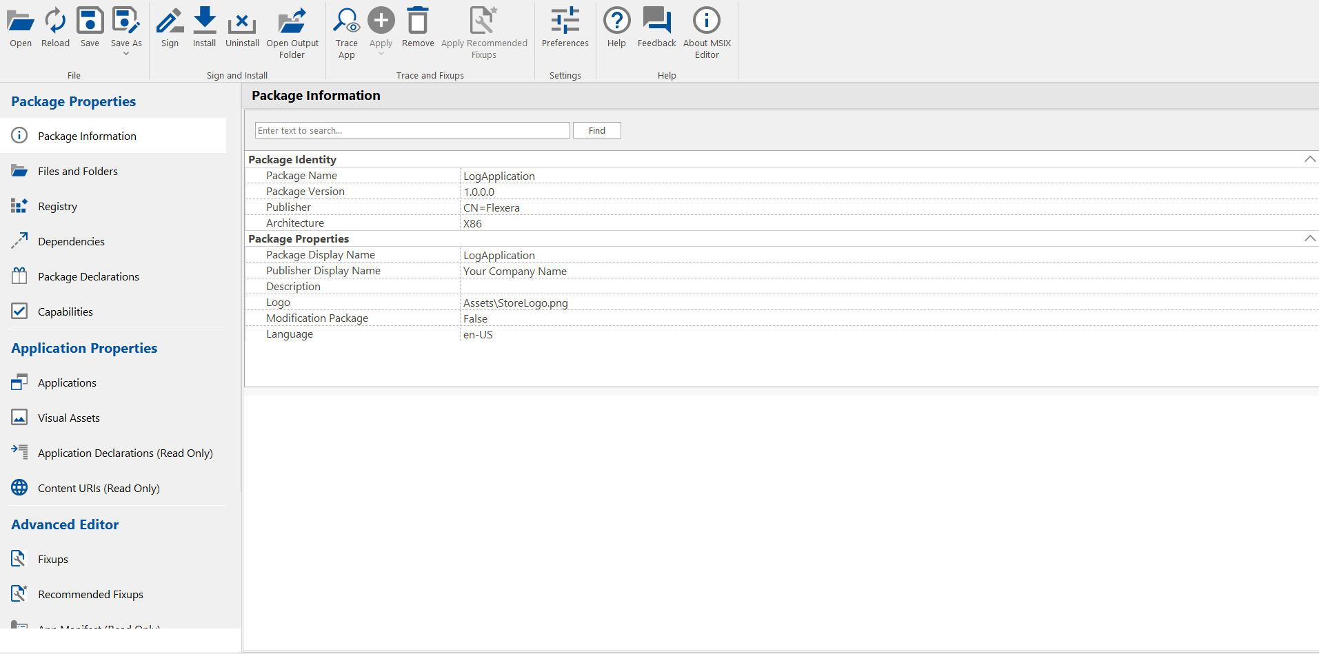1. Open the desired MSIX Package in the MSIX Editor. For more information, see Opening an MSIX Package.