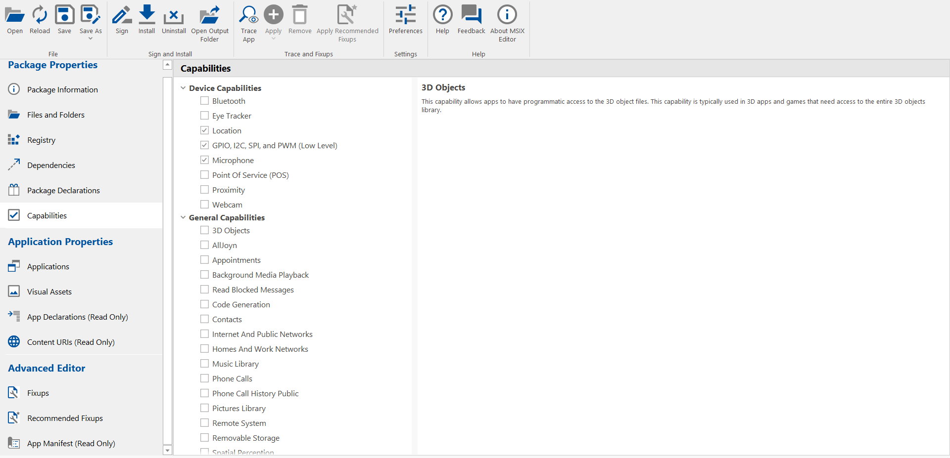 1. Click on Capabilities view in the left pane view list under Package Properties.